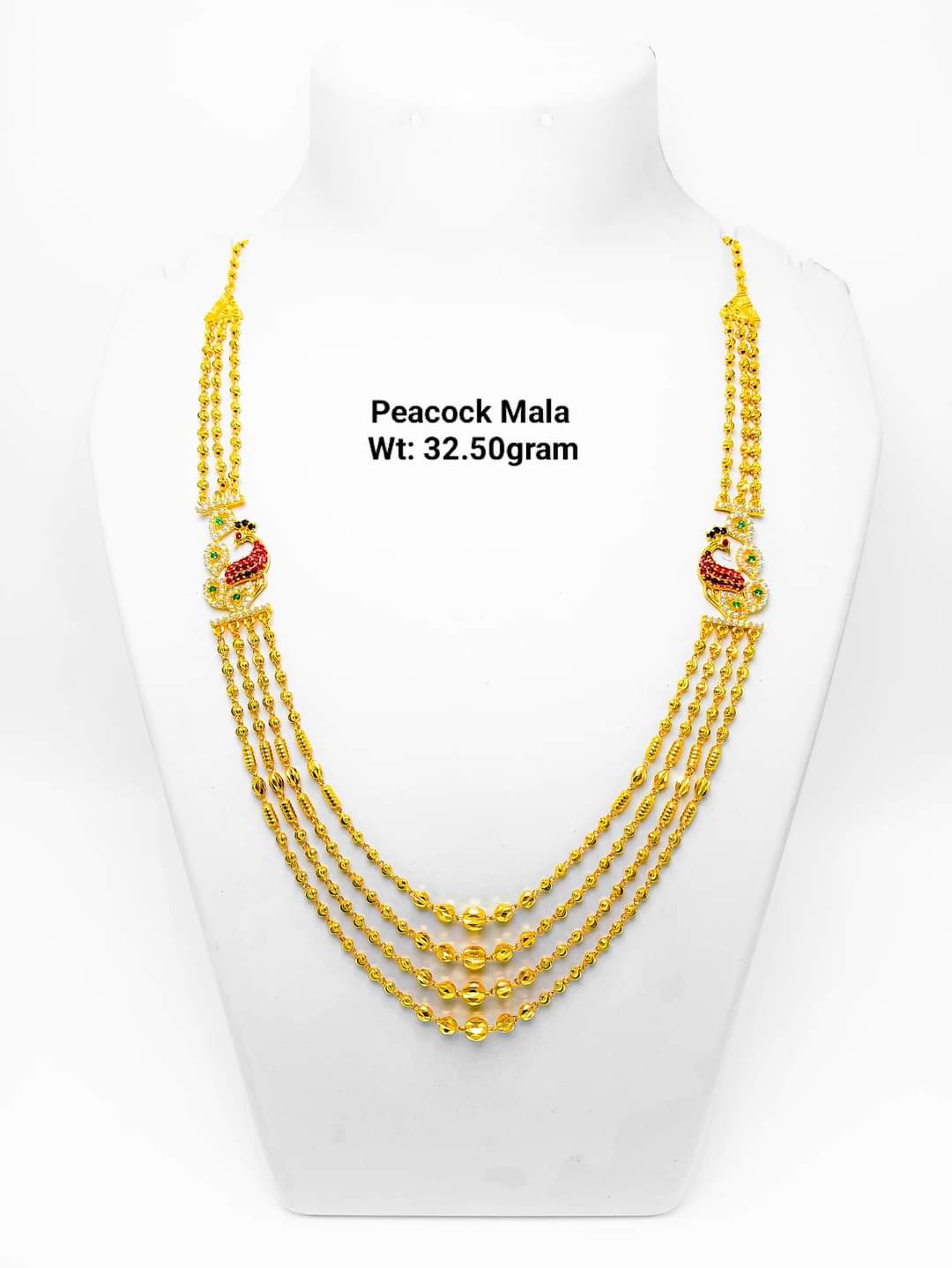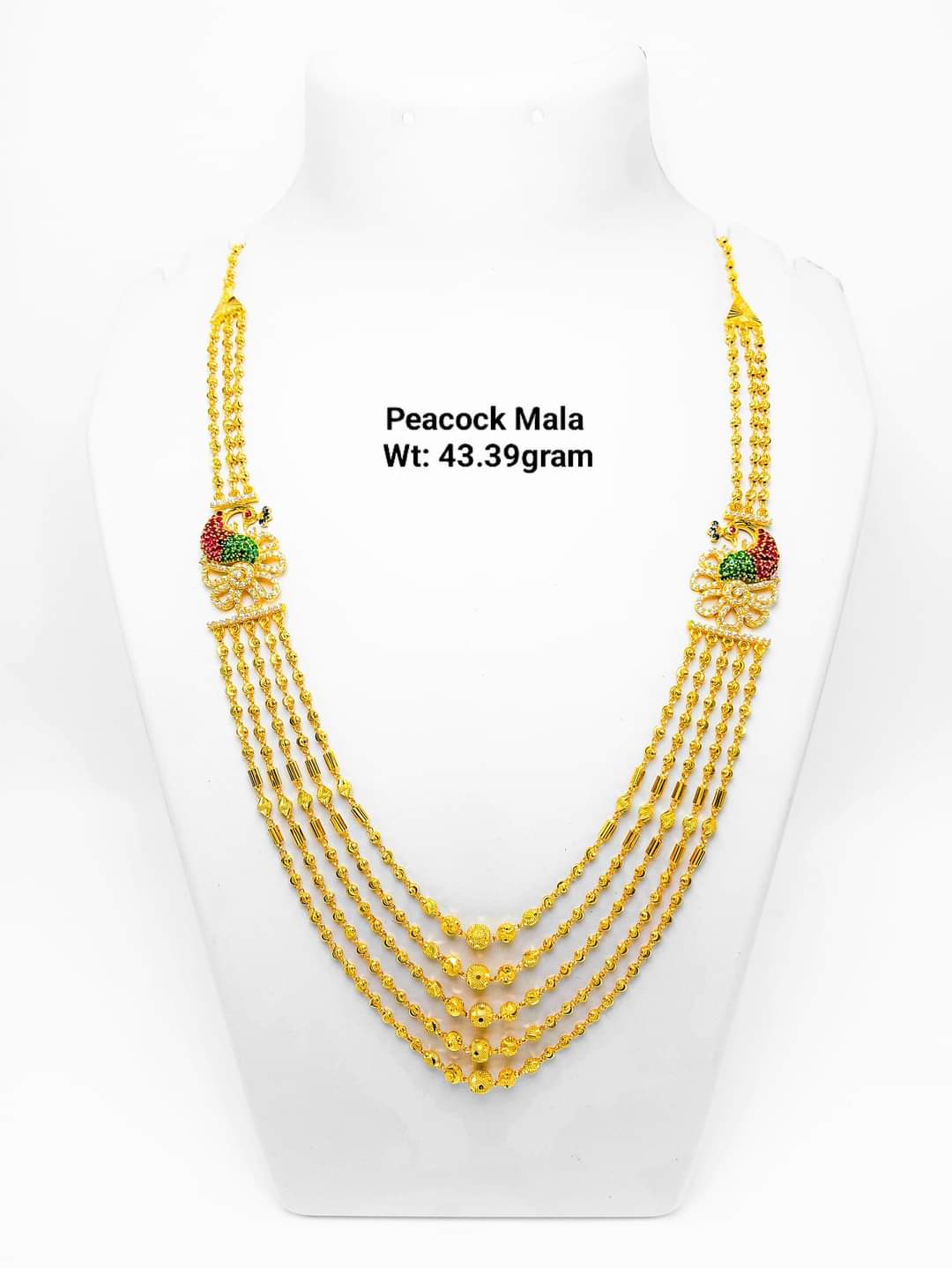 Mop Mala 6 Layers 22k Gold with Peacock Pendant